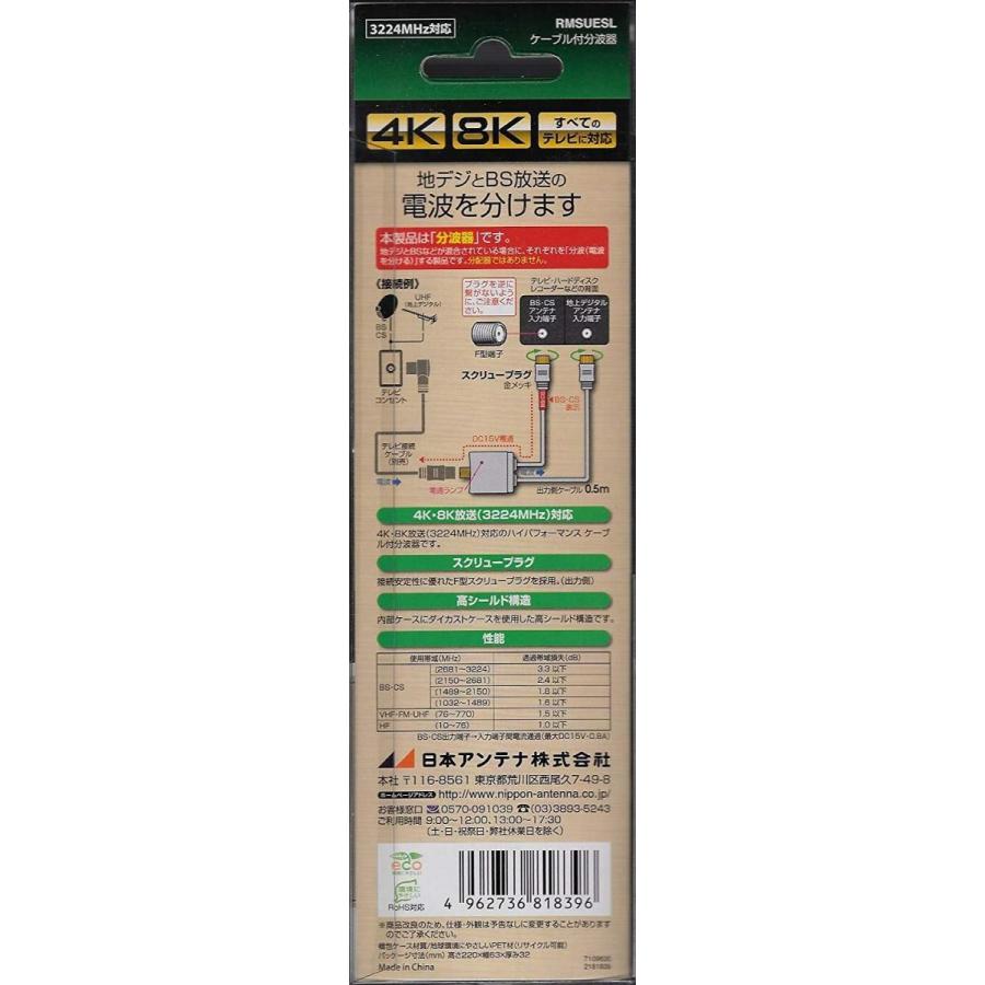 日本アンテナ 4k8k放送対応 ケーブル付き高品質分波器 tv側スクリュープラグ rmsuesl franphoto ie
